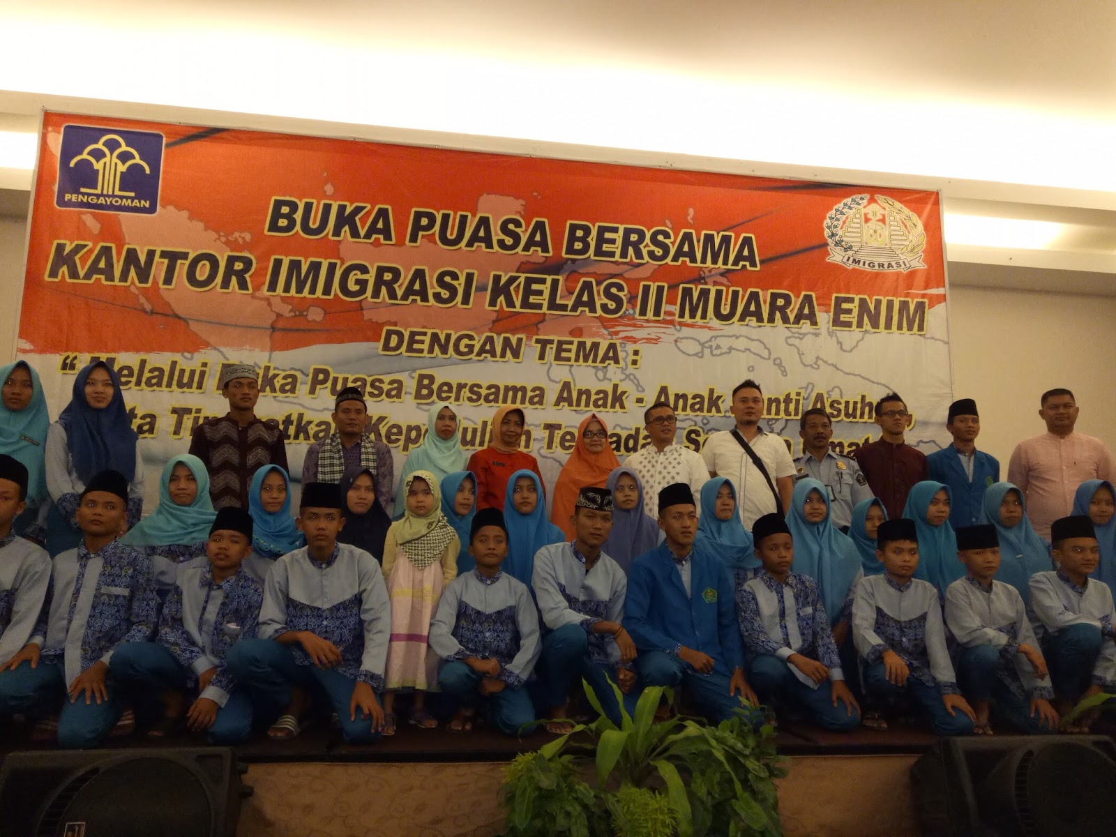 Muaraenim, News – Kantor imigrasi kelas II Muaraenim, Sumatera Selatan, memberikan santunan berup uang dan sembako kepada anak anak panti asuhan, di Muaraenim.
