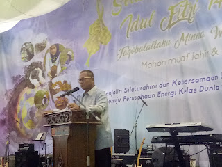 “Kerja keras, kerja ikhlas semua karyawan dan managemen PT Bulit Asam, telah membawa peningkatan yang luar biasa di semester pertama tahun 2017 bagi perusahaan kita ini, ” Kata Direktur Utama PTBA Arviyan Arivin pada acara Halal Bilhalal 1438 H di GOR PT BA, Tanjung Enim, Kamis (20/7/2017).