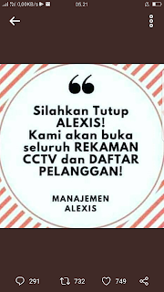 “Silahkan tutup ALEXIS! Kami akan buka seluruh Rekaman CCTV dan daftar pelanggan – MANAJEMEN ALEXIS,” begitu postingan gambar tulisan di akun Twitter milik Iwan Fals, @iwanfals, Selasa (31/10/2017).